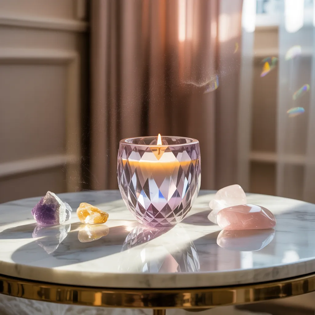 Although few people are aware of it, different crystals emit unique energy vibrations that can profoundly affect their surroundings. Every variety of crystal carries a unique frequency that shapes the mood and ambiance of any given area. For instance, amethyst is often linked to calmness and clarity, making it ideal for creating a serene environment. In contrast, citrine is associated with energy and positivity, fostering an uplifting ambiance. Such frequencies engage with human feelings, potentially boosting either a sense of calm or heightened concentration, based on the crystal selected. Grasping these variations in energetic output enables individuals to deliberately design their spaces, utilizing crystal candles as vehicles for both decorative charm and emotional harmony. Therefore, the synergy of crystal vibrations serves a pivotal function in shaping the full experience of serenity and sophisticated style.